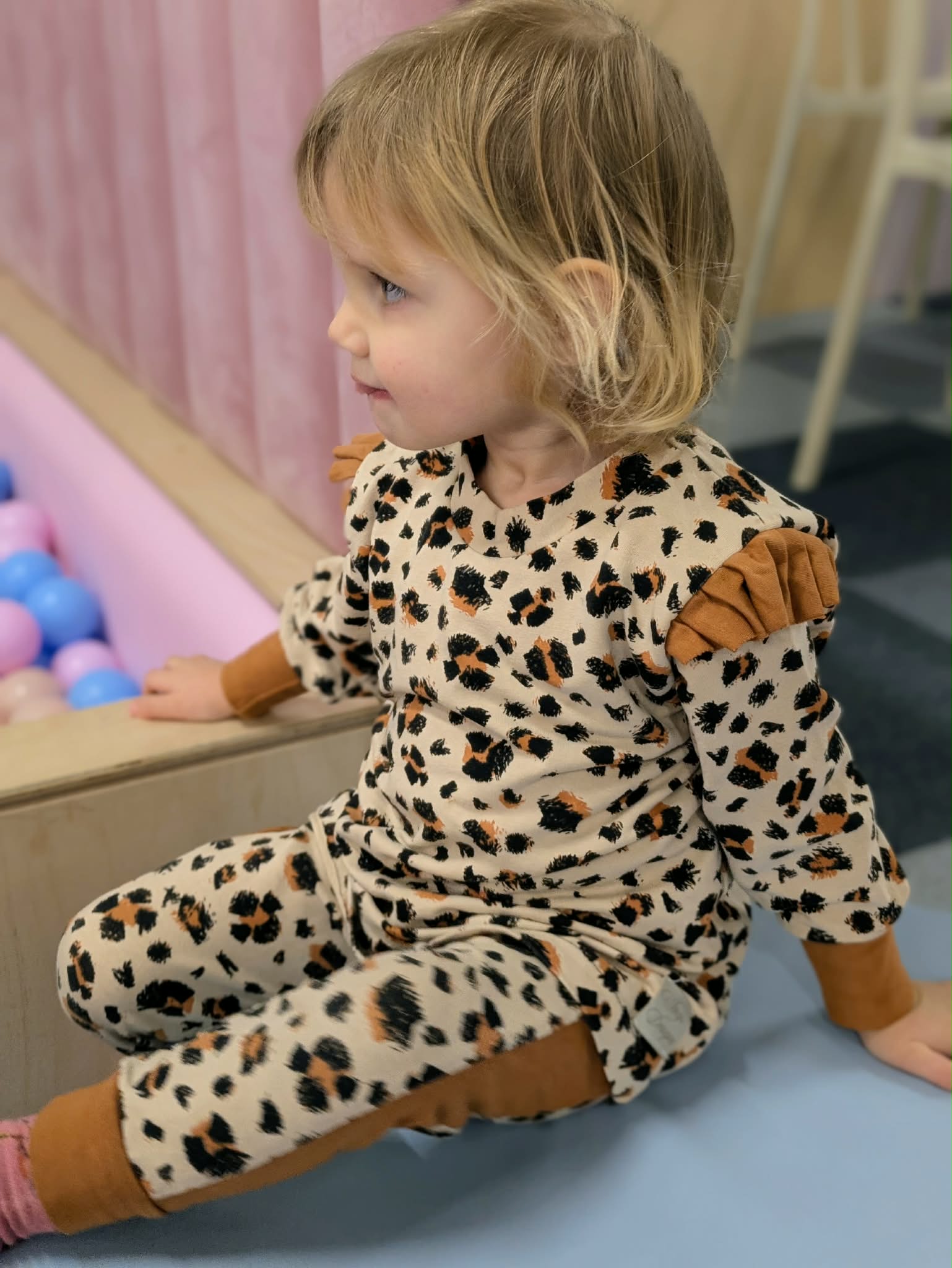 Dres dla dziewczynki szyty na zamówienie to połączenie wygody i wyjątkowego wyglądu 💛 Kolorowy wzór w cętki przyciąga uwagę i sprawia, że dziecko wygląda naprawdę wyjątkowo.