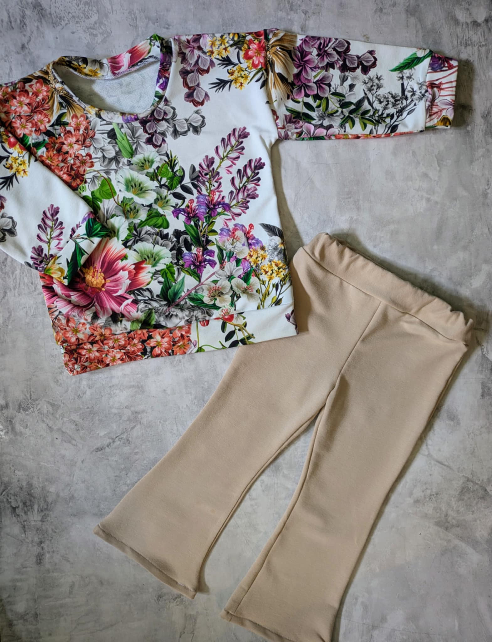 Komplet wykonany z dzianiny dresowej.
